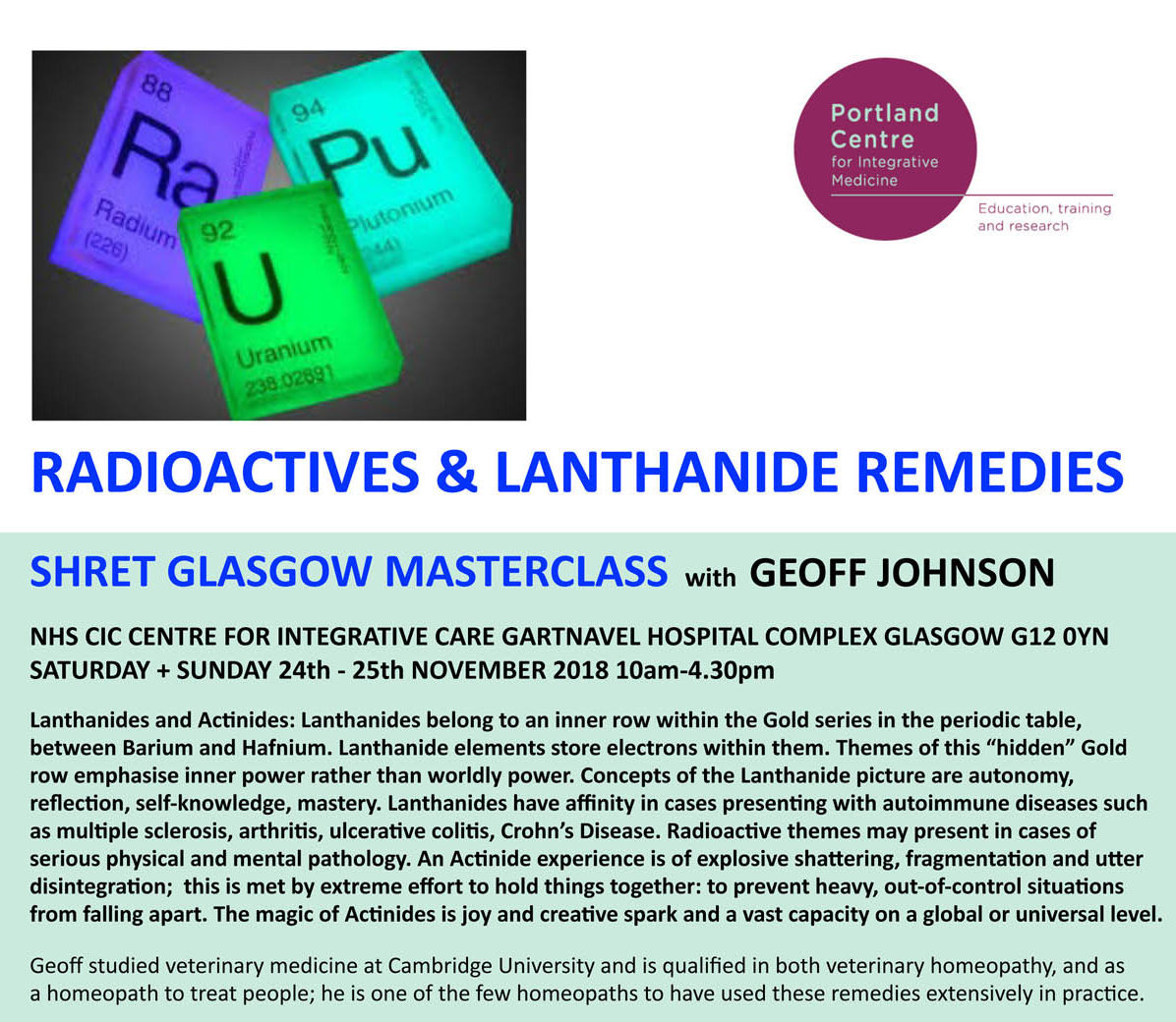 Please see further details and the booking link below.https://www.eventbrite.co.uk/e/radioactives-lanthanide-remedies-2-day-masterclass-in-glasgow-with-geoff-johnson-tickets-50729635706